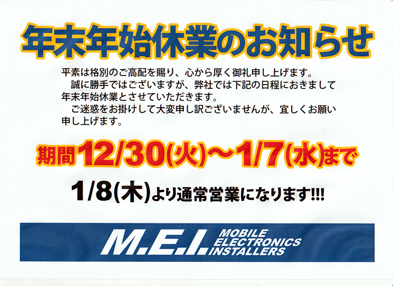 ÅöŹ¤Ï¡¢ËÜÆü12/29¡Ê·î¡Ë¤¬ºÇ¸å¤Î±Ä¶ÈÆü¤Ç¤·¤¿¡£